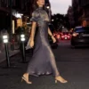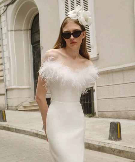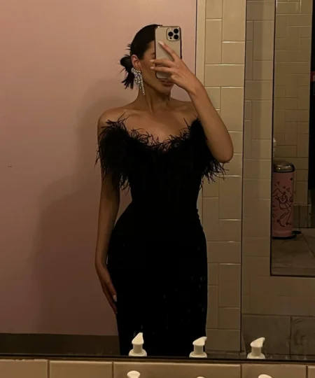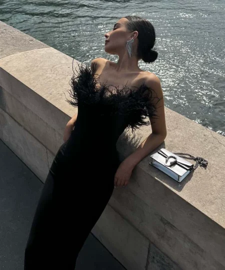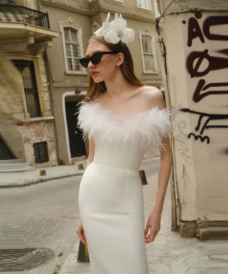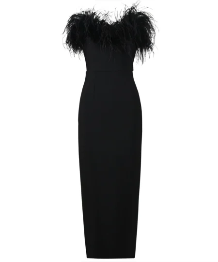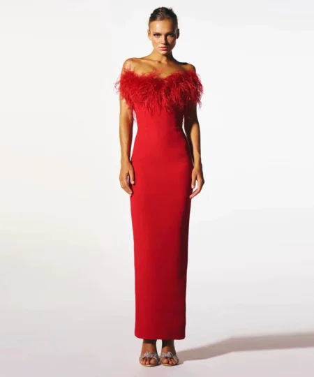 Saltriveroutfitters Luxury Off-Shoulder Feather Long Dress for Women